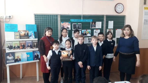 Мектеп кітапханашылары Нысанбаева Ғ.С. және Жанжакина А.Т. Тұңғыш Президент күніне орай, 4г, 4ғ және 4д сыныптарға "Назарбаевтай болғым келеді" кітабына тұсаукесер-шолу жасады.