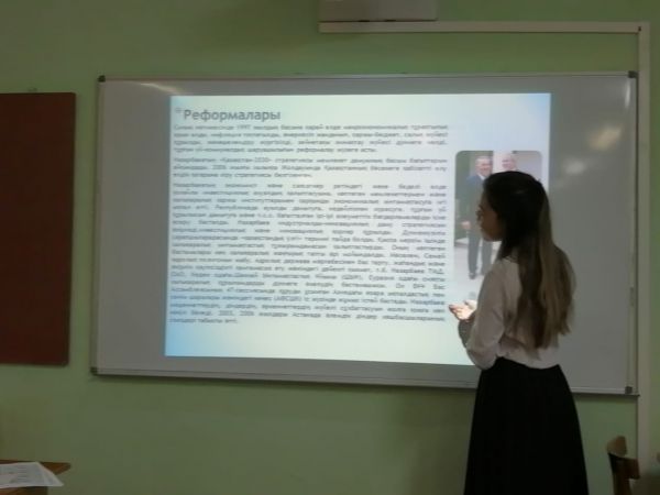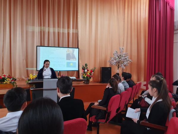 "Елін сүйген елі сүйген елбасы" тақырыбында Бердалин Нияз Бекетович мұғалімінің жетекшілігімен 9-11 сыныптар аралығында тұңғыш президент күніне арналған тәрбие сағаты өткізілді. Оқушылар е…