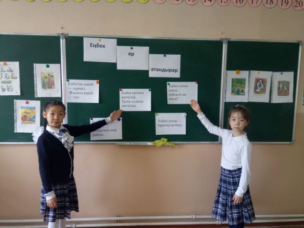 Бүгінгі сынып сағаты "Еңбек ер атандырады" тақырыбы бойынша оқушылар мақал мателдер айтып, сюжеттік сурет бойынша сөйлем ангімелер құрай отырып, жылдың төрт мезгіліндегі еңбек турлерін айт…