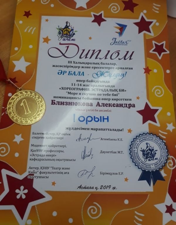 Поздравляем победительницу 3-го Международного хореографического конкурса среди детей 11-14 лет, Близнюкову Александру за занятое 1 место.