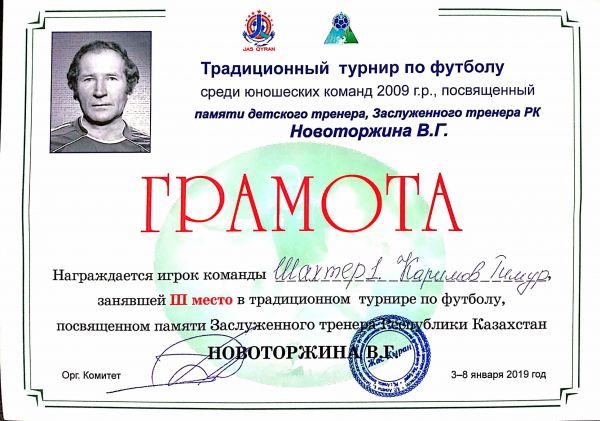 Поздравляем ученика 3А класса Каримова Тимура за зянятое 3 место в традиционном турнире по футболу.