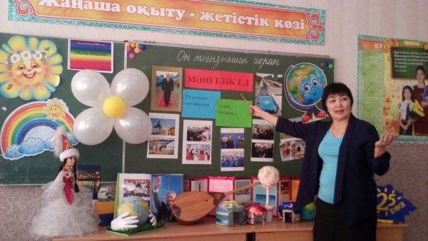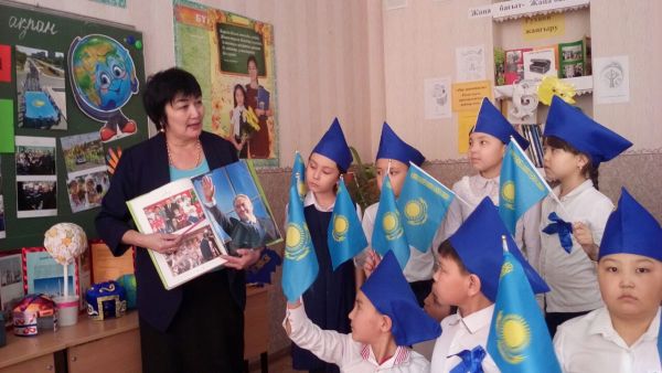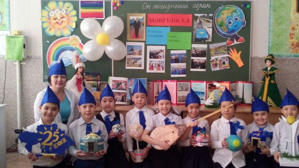 19.02.18 жұлдызында 3 «Е» сынып оқушылары «Мәңгілік ел» тақырыбы аясында ауқымды тәрбие сағатын өткізді. Сынып жетекшісі М.А.Кизирова,Тәуелс…