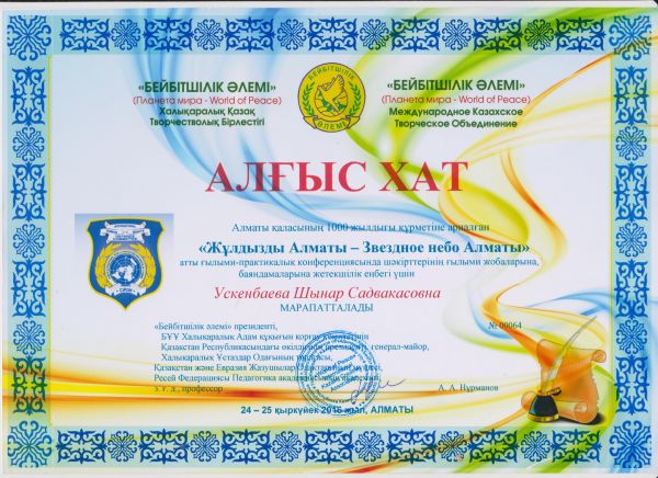 Алматы қаласында 25- 26 қыркүйекте Халықаралық Ұстаздар қоғамы және Халықаралық Ғалымдар қоғамы, «Бейбітшілік әлемі» халықаралық Қазақ Творчестволық Бірлестігі ұйымдастырған «Жұлды…