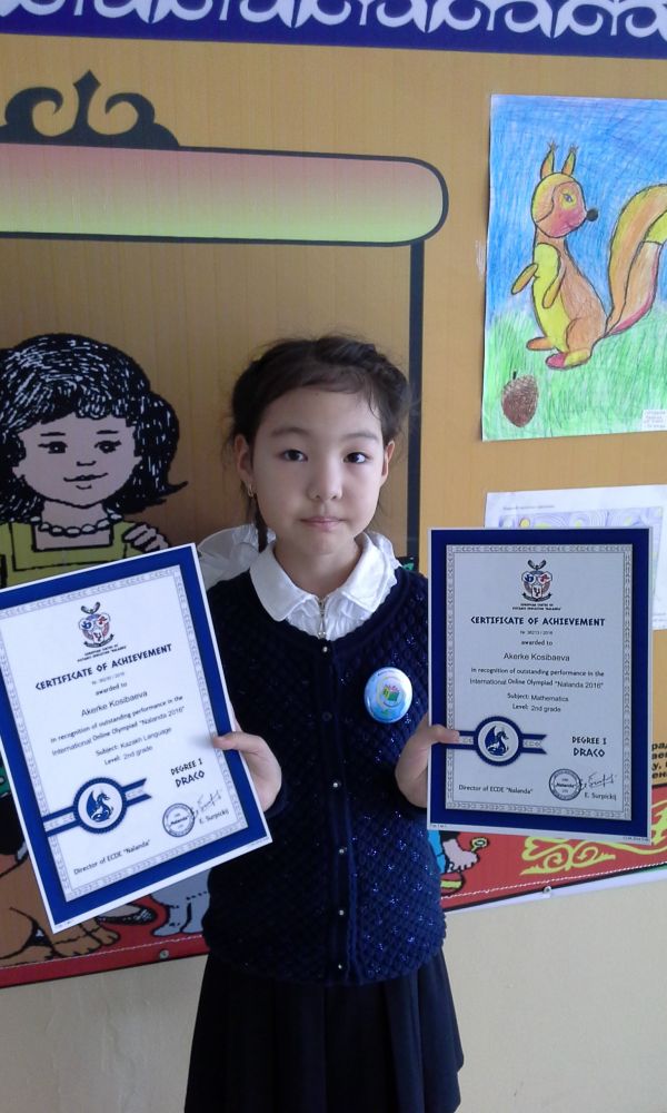 Қашықтықта жүргізілген «Ноланда» атты халықаралық олимпиадалық сайысқа қатысып, 2 «Ә» сынып оқушысы Қосыбаева Ақерке математика пәнінен I орын, қазақ тілінен I ор…