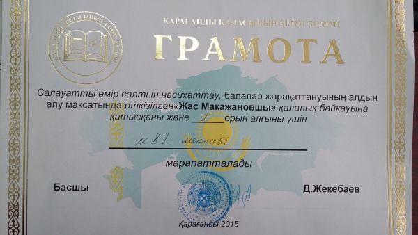 30 қазан күні қалалық «Жас Мақажановшылар» байкауы өтті. Біздің мектеп оқушылары І орын иеленді. Топта 5 оқушы 6 «Ә» сыныбынан құрылды.