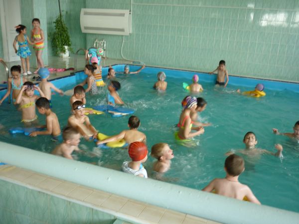 выезд ребят пришкольного лагеря в бассейн.