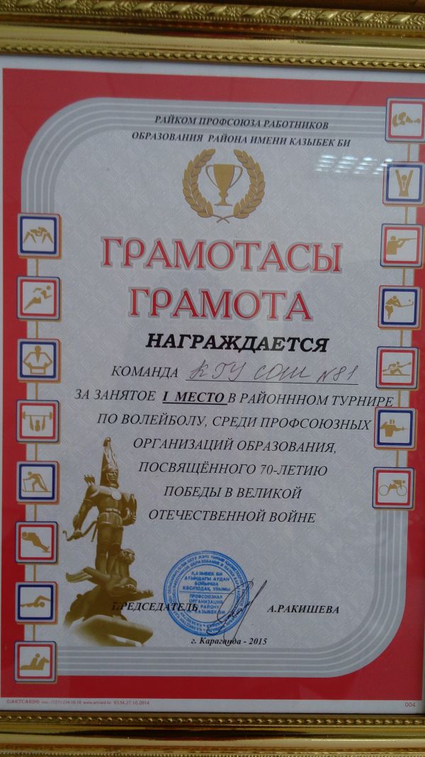 По итогам городской предметной олимпиады по русскому языку и литературе, проводимым КЭУ, ученица 11 "Ә" класса Тойбеккызы Айгерим заняла III призовое место (руководитель Олжат…