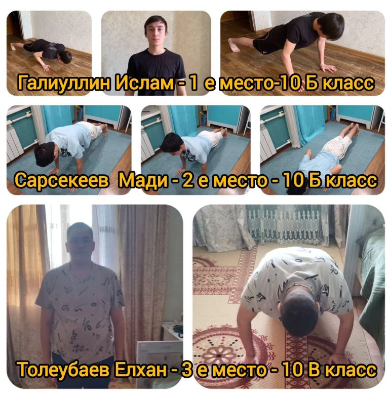 Неделя физической культуры: Здоровым будешь - всё добудешь. Дата: 20.02.2024 г Спортивное мероприятие ( юноши ) - отжимание. 1-е место - Галиуллин Ислам - 10 Б класс; 2-е место - Сарсекеев Мади - 10…