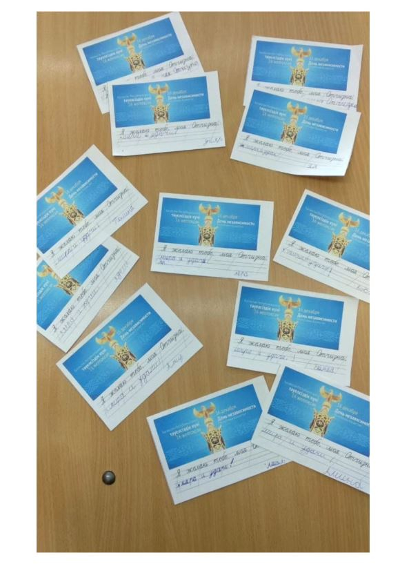 1"Е" сыныбында Тәуелсіздік күніне "Біз- тәуелсіз мемлекетпіз" тақырыбында сынып сағаты өтті. Балалар Отан туралы тақпақ, өлеңдерін айтты.