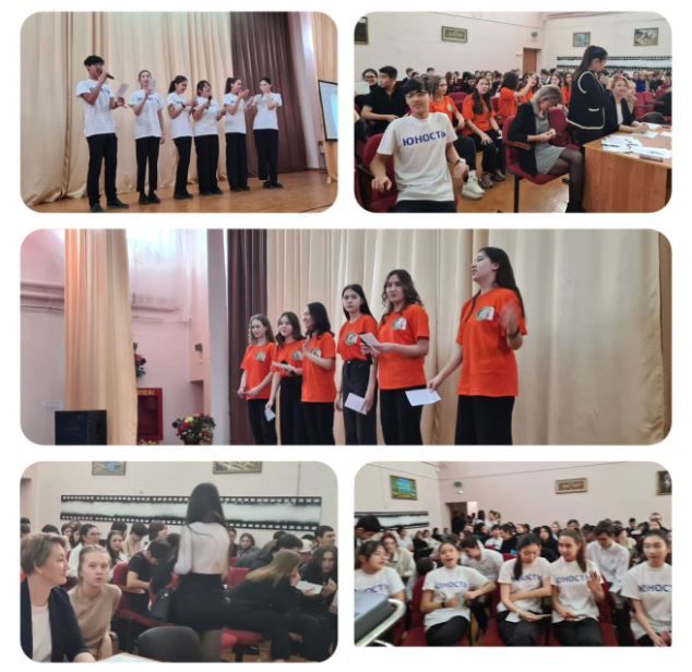 5 команд из учащихся: 10-х и 11А ,11В классов достойно представили свои классы.Все были на высоте:пели,перевоплощалисьв героев.