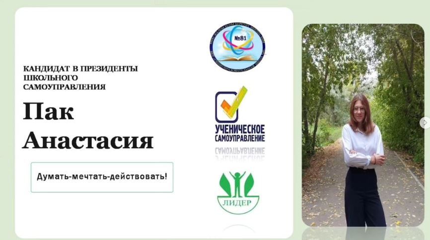 №81 ЖББМ мектептің оқушылар назарына «Өзін-өзі басқару» ұйымының қатысуымен 8,9 және 10 сынып оқушылары арасында «Мектеп президенті» сайлауы өтеді.