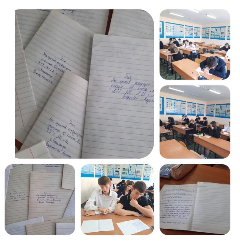 Сегодня в школе прошёл конкурс эссе на антикоррупционную тематику. Свое отрицательное отношение к коррупции, а также видение честного и добропорядочного образа жизни выразили ученики 10-…
