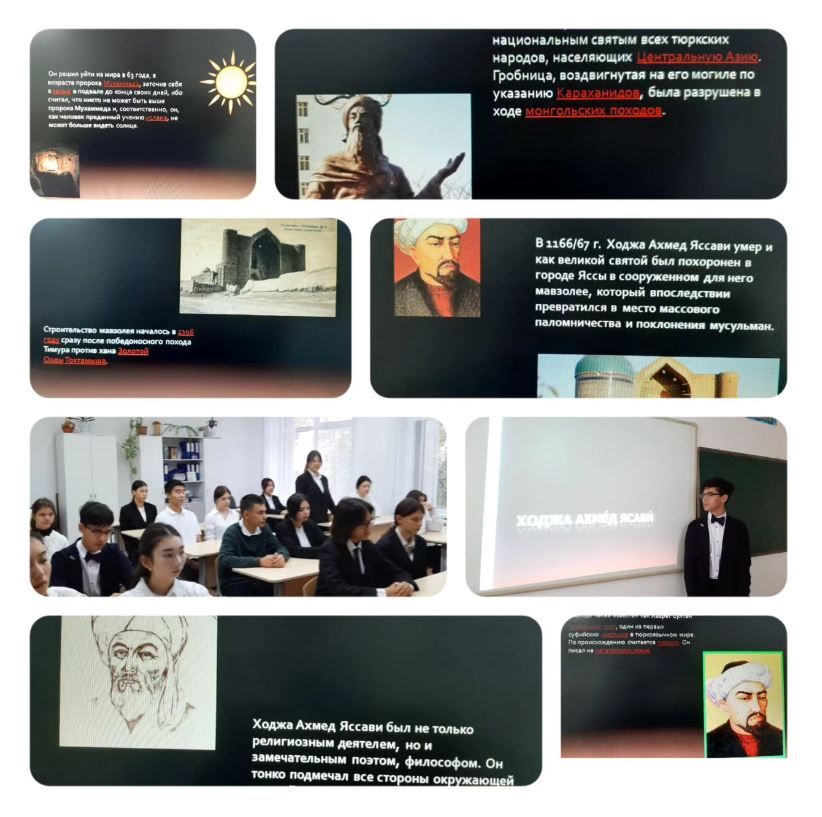 Сегодня в 11В классе прошел классный час на тему: "Учение мудрости Кожа Ахмета Ясауи" 930 лет со дня рождения Кожа Ахмета Ясауи.