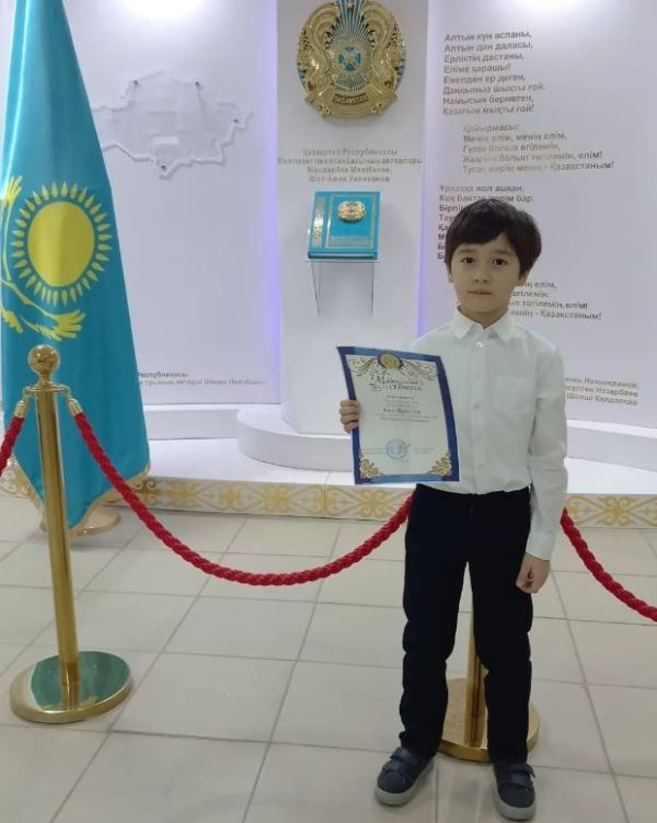 Поздравляем ученика 1 "А" класса Зубайдуллина Артура за занятое l место в республиканской олимпиаде "Акбота" Молодец!