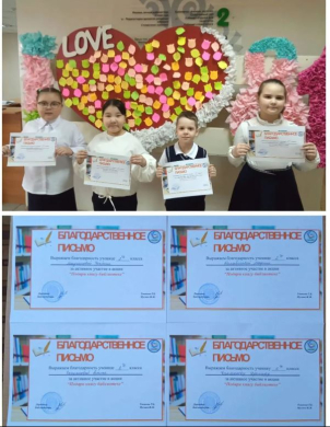 Библиотека нашей школы наградила учеников 2 Г класса благодарственными грамотами за активное участие в акции "Подари книгу библиотеке".