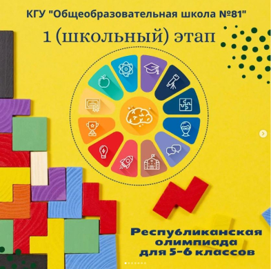 7 ноября 2022 г. состоялся 1 (школьный) этап Республиканской Олимпиады для 5-6 классов, в котором приняли участие свыше 200 учеников. Ученики состязались в олимпиаде по 6 предметам: