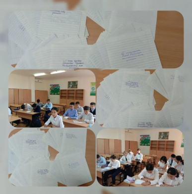 08.09.2022ж. 7 сынып оқушылары Қазақстан халқы тілдері күніне және А.Байтұрсынұлының 150 жылдығына орай «Ахмет Байтұрсынұлы - Ұлт жанашыры» тақырыбында диктант жазды. Пән мұғалімдері: Ж…