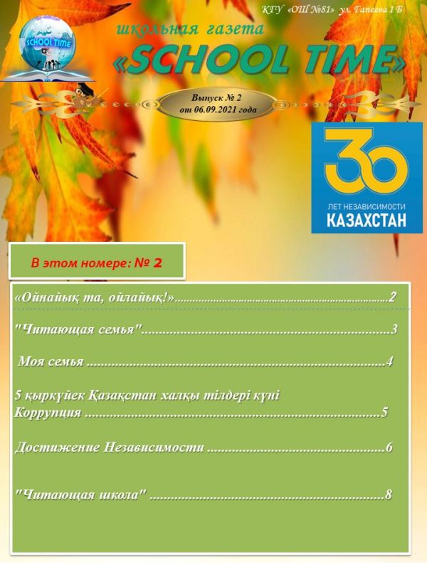 "SCHOOL TIME" Выпуск №2 06.09.2021
