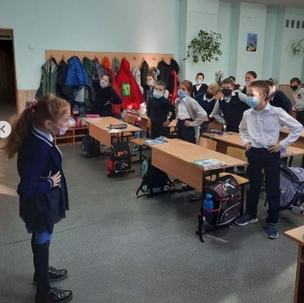 Зарядку выполняют ученики 1 Г класса с кл. рук. Тетериной И. В.