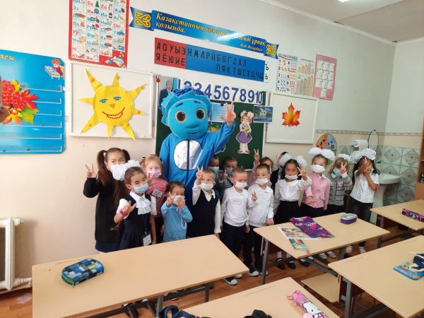 В КГУ «ОШ №81» 3 сентября 2021г.,среди первоклассников была проведена профилактическая беседа на тему: «Короновирус и его профилактика».