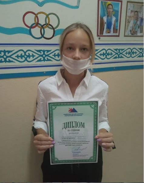 Ученица 9А класса Малачаева Ангелина приняла участие в открытом Чемпионате Кыргызской Республики по лёгкой атлетике и заняла lll место в беге на 100метров.