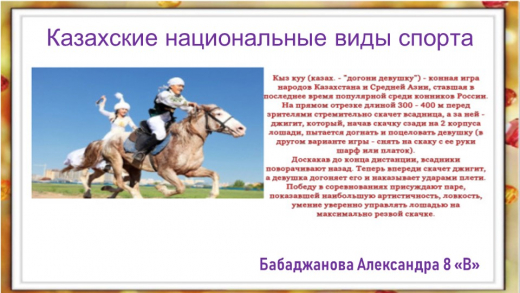 Казахские национальный виды спорта Выполнил ученик 8 "В"класс @goroo_krg @umckrg @uo_krg