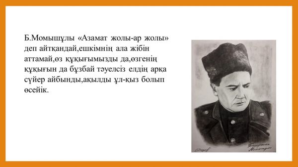 Бұқар жарау Қалақаманұлының құрметіне өткен "Бұқарекең жырлайды" атты облыстық мүшәйраға 81 ЖББОМ 5ә сынып оқушысы Өмірзақ Аяған белсенді қатысып алғыс хатпен марапатталды.