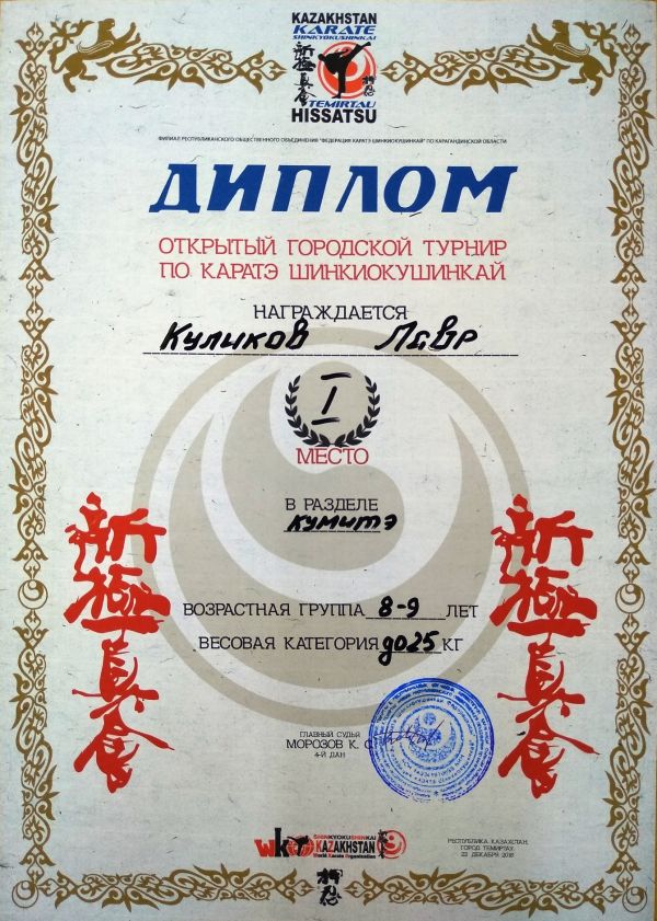 I место по каратэ шинкиокушинкай