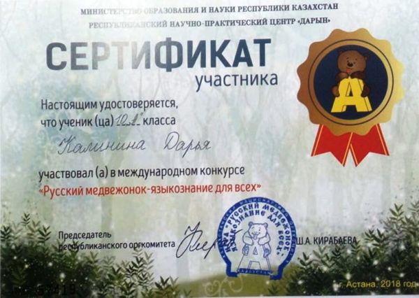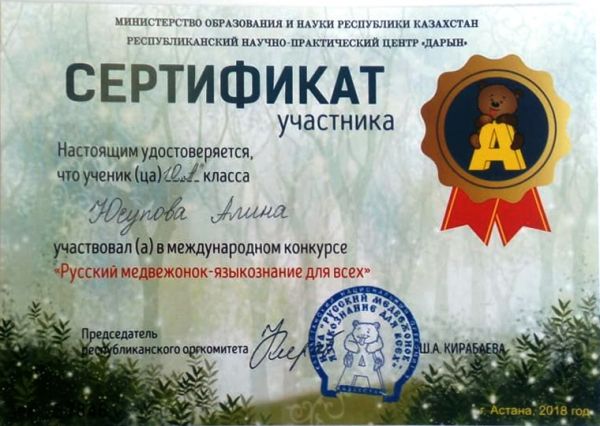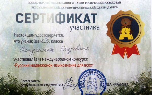Орыс тілі және әдебиет пәні бойынша "Руский медвежонок" халықаралық байқау