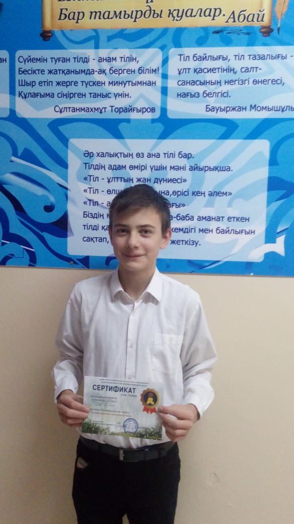 7 Д сынып оқушысы Жолшорин Алишерды құттықтаймыз.