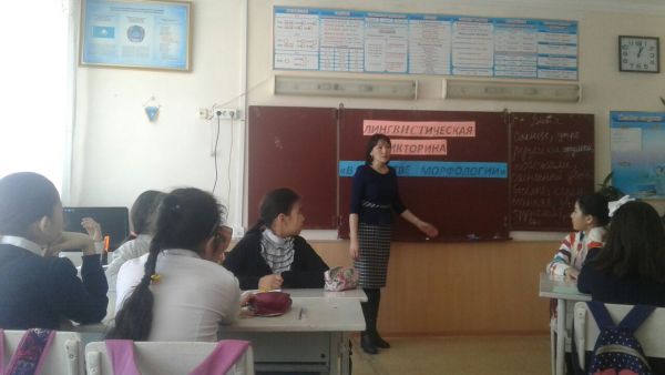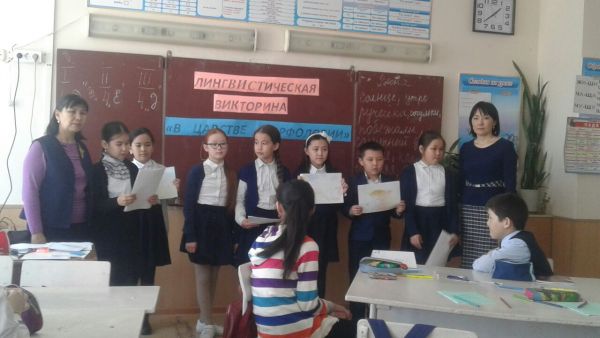 07 сәуір 2017 жылы орыс тілі мен әдебиеті апталығы аясында 4 "Ә",4 "Д", 4 "Е" сыныптар арасында "Морфология патшалығында" атты линвистикалық викторина болып ө…