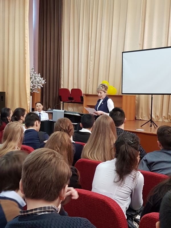 10 сәуір 2017 жылы орыс тілі мен әдебиет аптылығына белсене қатысып, жеңімпаз оқушыларды құттықтады.