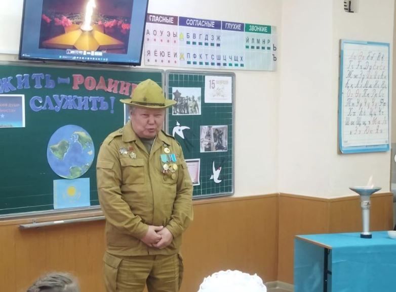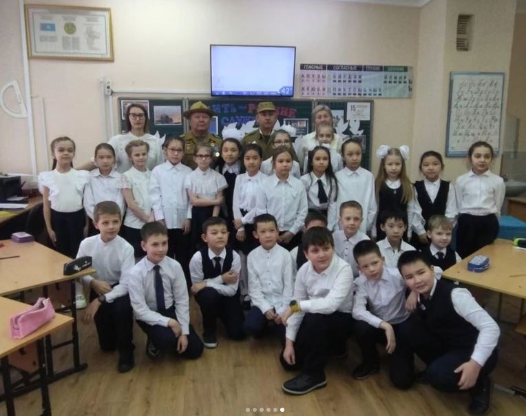 15 февраля 2024г ученики 1 "А" ОШ №81 провели экскурсию в музей Славы и отдали дань памяти погибшему в Афганистане земляку Амангельды Калмагамбетову. Вечная Слава! кл рук Кузина НН