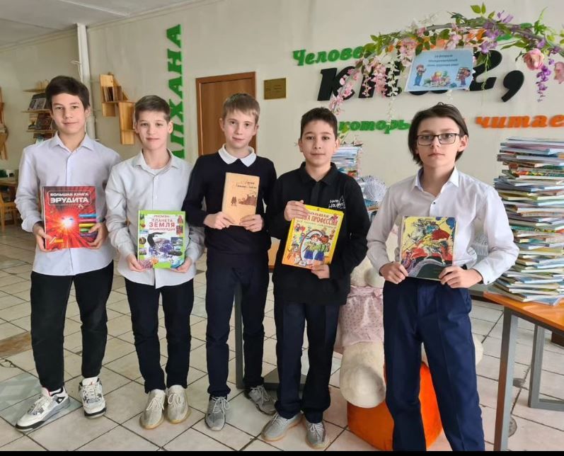 В рамках акции:"Подари книгу школьной библиотеке ученики 7Б класса подарили книги школьной библиотеке.