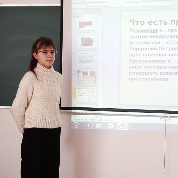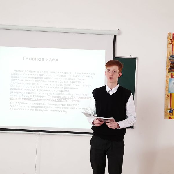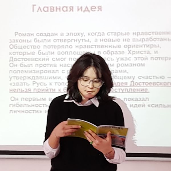 Құқықтық апталықты өткізу аясында 10-сыныпта У. К. Серікпаева "Ф.М. Достоевскийдің шығармашылығының маңызы" тақырыбында әдебиет сабағын өткізді.