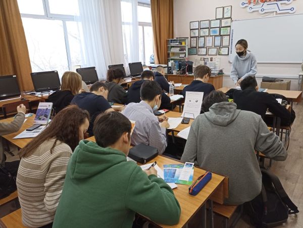 11-сынып оқушыларының Қазтұтынуодағы Қарағанды университетінің өкілімен кәсіби бағдар беру кездесуі