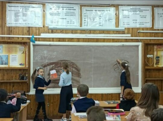4 "А" сынып оқушылары көрмеге қатысты. Мектеп кітапханашысы Г. в. Ханина оқушыларды Талғат Бигелдиновтың кітаптарымен таныстырып, "Илы атакуют" кітабын оқи бастады.