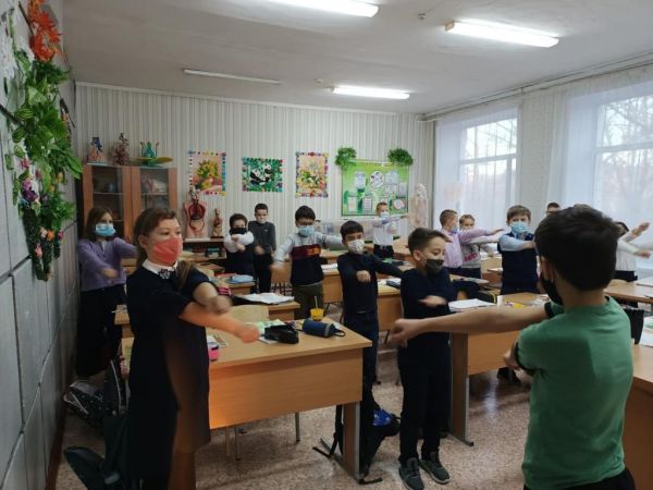 Проведение утренней зарядки в КГУ ОШ 88