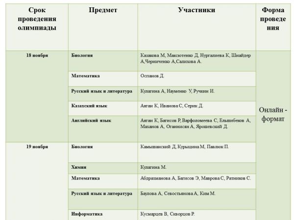 Республикалық олимпиаданың І (мектеп) кезеңінің қорытындылары