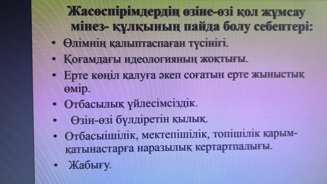 Балаларды зорлық-зомбылықтан қорғау, суицидтің алдын алу және олардың құқықтары мен әл-ауқатын қамтамасыз ету жөніндегі 2023-2025 жылдарға арналған Кешенді жоспарды іске асыру шеңберінде мектептің м…