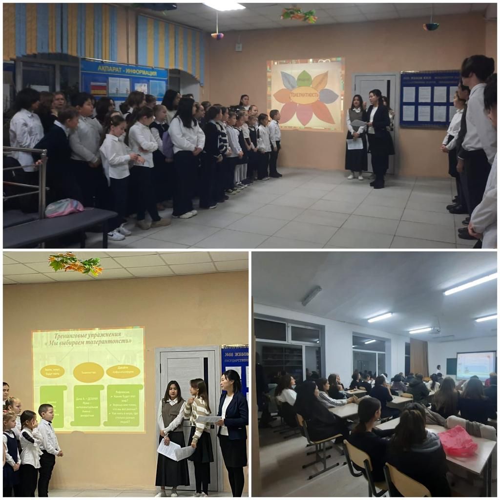 Толеранттылық онкүндік аясында, 8 сынып оқушыларының арасында саптық жиын және сынып сағаты өтті