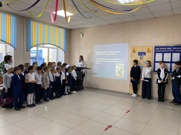 19 қыркүйекте 1-11 сынып оқушылары үшін «Мектеп оқушыларының жолда жүру ережелері» тақырыбында саптық жиын және сынып сағаттары өткізілді