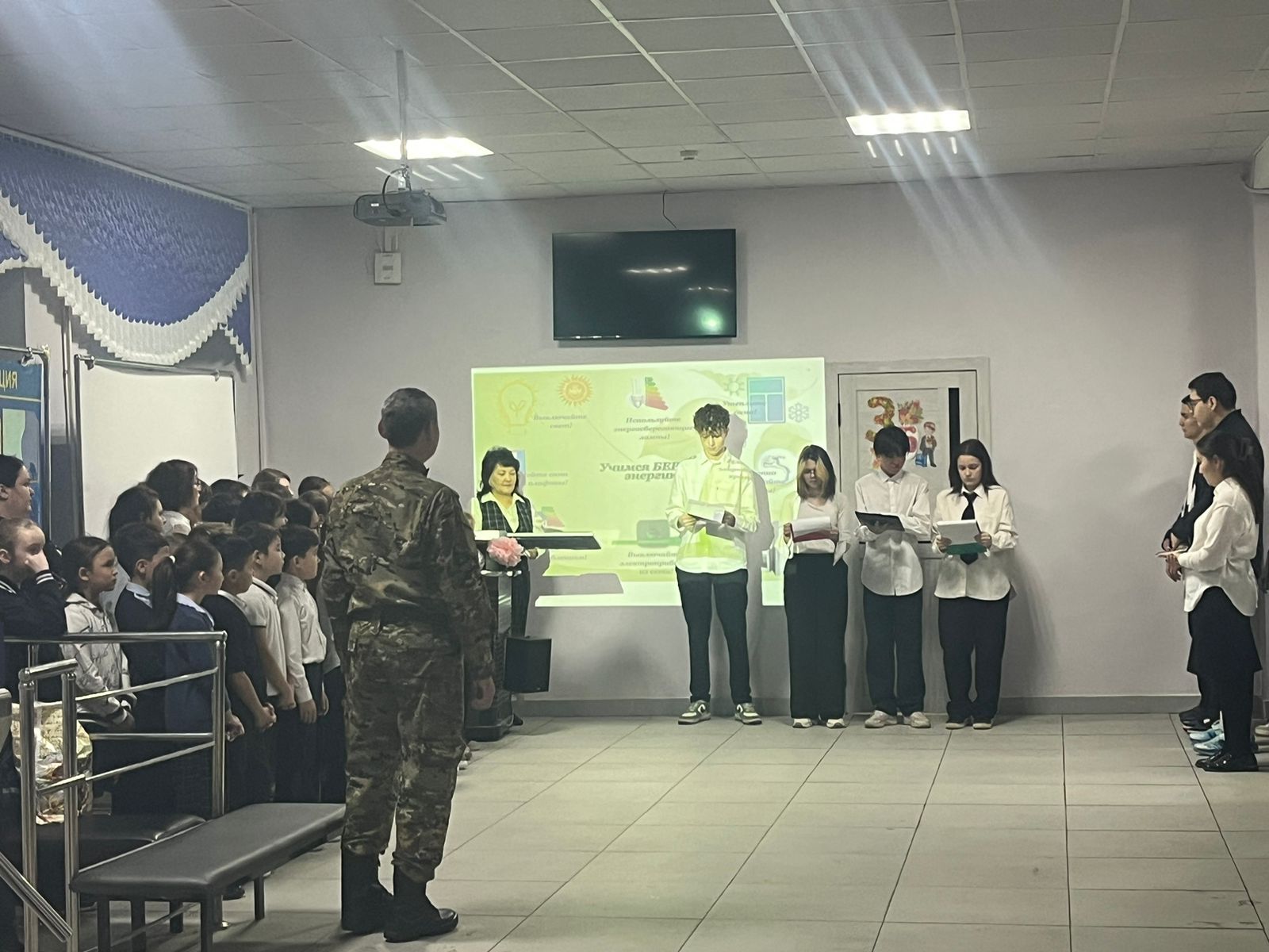 10 "Б" сыныбы өткізген саптық жиының тақырыбы: "Рациональное использование воды,пищи,энергии"өтілді..
