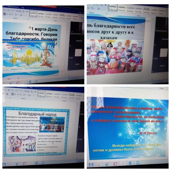 Бүгін Алғыс айту күніне арналған сынып сағаттары онлайн режимінде мектепте өткізілді.