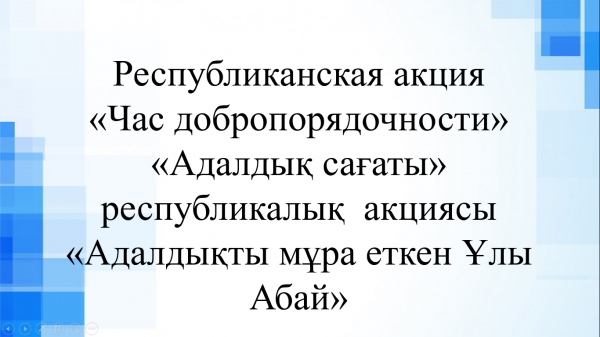 18 мамырда 9-11 сынып оқушылары Абай Құнанбаевтың 175 жылдығына орай «Адалдықты мұра еткен Ұла Абай» тақырыбында ұлы ақынның мұрасына арналған «Адалдық сағаты&raq…