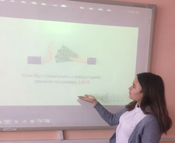 2018 жылы 14 наурызда "Сыбайлас жемқорлықты тоқтатамыз !" тақырыбында ҚР заңнамасының 20 жылдығына арналған 9-11 сыныптарда бірыңғай сынып сағаты өткізілді.