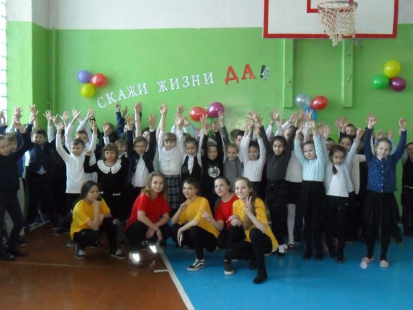 2018 жыл 5 наурыз. Бастауыш сынып балаларына арналған «Өмірге Ия деп айт!» Республикалық кампания аясында 9 сынып оқушылары флешмоб өткізді.