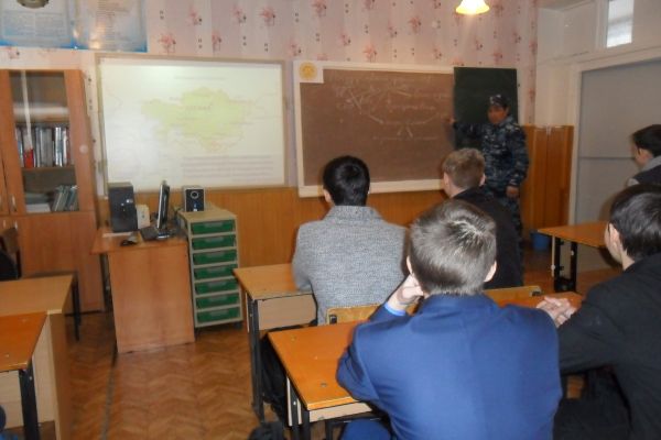 Учитель НВП Елубаев Н.К. в 10 классе пр…