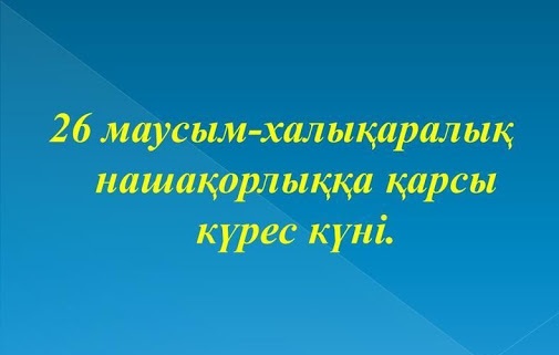 Маусымның 26-сы – Халықаралық нашақорлық пен есірткінің заңсыз айналымына қарсы күрес күні. Атаулы күнді БҰҰ Бас ассамблеясы 1987 жылдың 7 желтоқсанында енгізген. 1987 жылғы "Нашақорлық п…