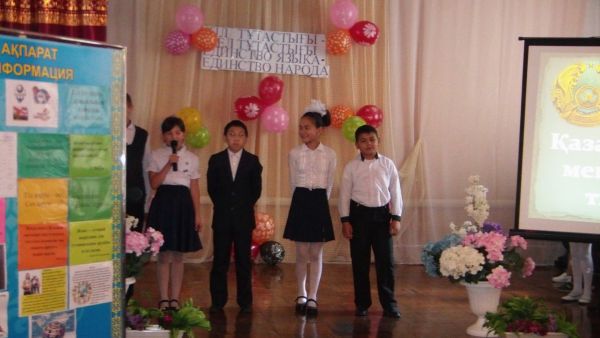 Мақсаты: оқушыларға мемлекеттік тілдің өркендеп, оянуына, мемлекеттік тілімізді сүюге, мемлекеттік тілді аяққа баспай, мәртебесін биік ұстау жөнінде, әр ұлттың өзіндік ерекшеліктері, салт-дәстүрі, д…